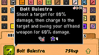 Turns out Bolt Balestra's calculation for offhand damage was using the main hand's weapon strength - that's now fixed! And to compensate for cases where the main hand was stronger, Bolt Balestra is no...